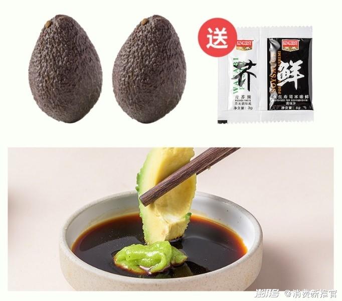 叮咚買(mǎi)菜售賣(mài)的牛油果,隨盒附贈(zèng)芥末和醬油|圖片來(lái)源:叮咚買(mǎi)菜