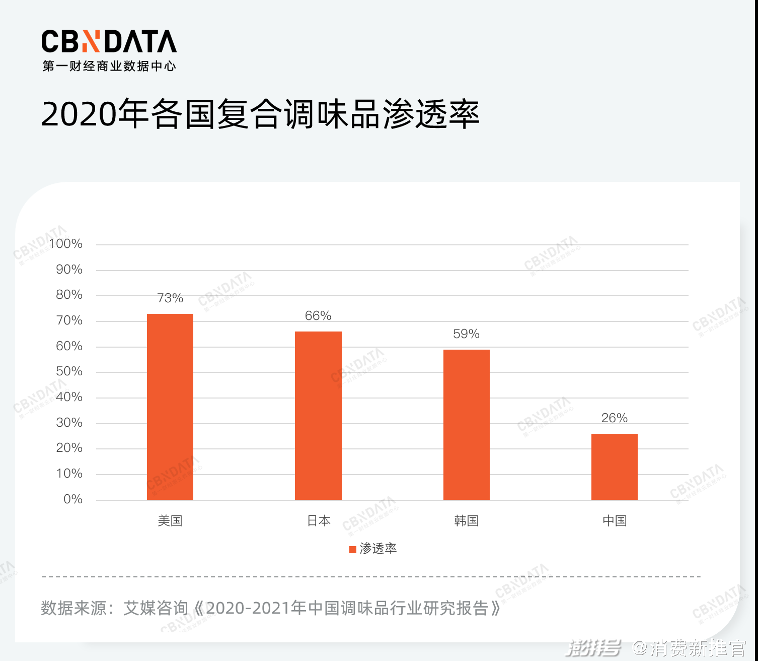 不同于單一調(diào)味品圈巨頭雄踞的局面,復(fù)合調(diào)味品領(lǐng)域市場(chǎng)集中度較低,市場(chǎng)滲透率也較低,這是新玩家們實(shí)現(xiàn)“彎道超車(chē)”的機(jī)會(huì)所在。艾媒咨詢數(shù)據(jù)顯示,2020年,美國(guó)、日本、韓國(guó)復(fù)合調(diào)味品滲透率分別為73%、66%和59%,而中國(guó)復(fù)合調(diào)味品滲透率僅為26%。ECdtaway數(shù)據(jù)威數(shù)據(jù)顯示,2021年天貓618期間,調(diào)味料/復(fù)合調(diào)味品TOP10品牌銷(xiāo)售額占有率為34%,調(diào)味醬為29%,均遠(yuǎn)低于日常調(diào)味品的77%。而從線上線下整個(gè)市場(chǎng)來(lái)看,復(fù)合調(diào)味品行業(yè)前5名品牌的市占率也僅為15%。