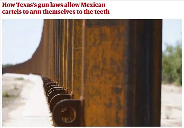 在得州獲得合法槍支彈藥很容易,然后在二級市場上獲得利潤豐厚的價格,使得一些墨西哥邊境城鎮(zhèn)充斥著槍支,包括一些暴力事件非常嚴(yán)重的城鎮(zhèn)。