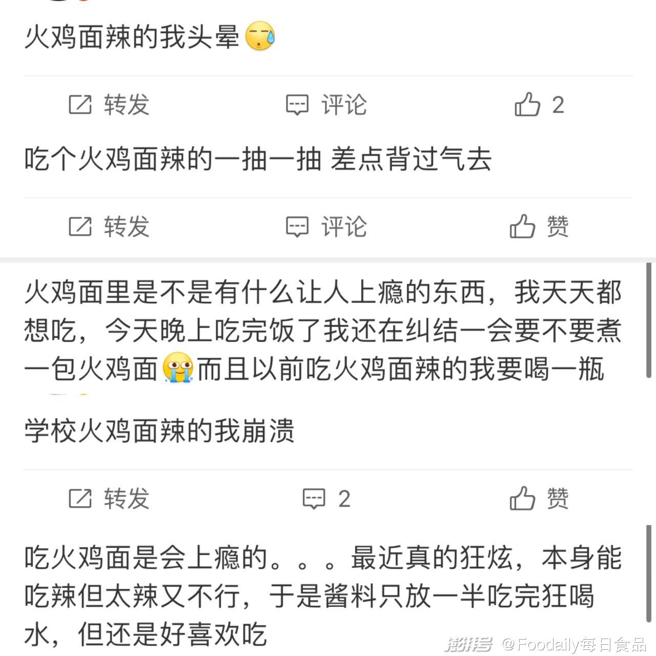 但這絲毫不影響它的熱度,雖然辣,但它辣得過癮,讓人上癮。不能吃辣的網友,寧愿少放點醬料也要吃火雞面,可見品牌塑造產品之成功。