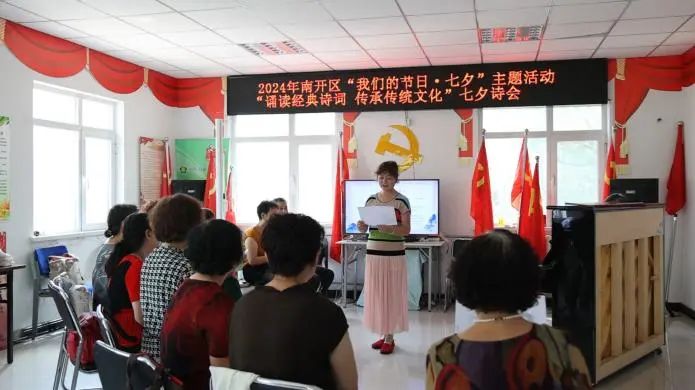 南開區(qū)學(xué)府街風(fēng)湖里社區(qū)新時代文明實踐站中傳出朗朗的讀書聲,一場別開生面的“七夕”詩會正在舉行。來自社區(qū)的10余位讀書愛好者歡聚一堂,大家通過誦讀“七夕”經(jīng)典詩詞作品,共同感受中華優(yōu)秀傳統(tǒng)文化的獨特魅力。