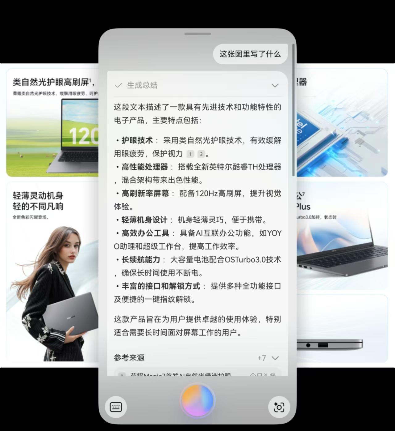 然后在HarmonyOS NEXT上,華為還將AI與OS深度融合,帶來盤古大模型加持的小藝智能,只需喚醒小藝,并針對屏幕上的信息內容詢問,即可智慧識別分屏,并根據屏幕內容回答用戶提問或處理文檔。