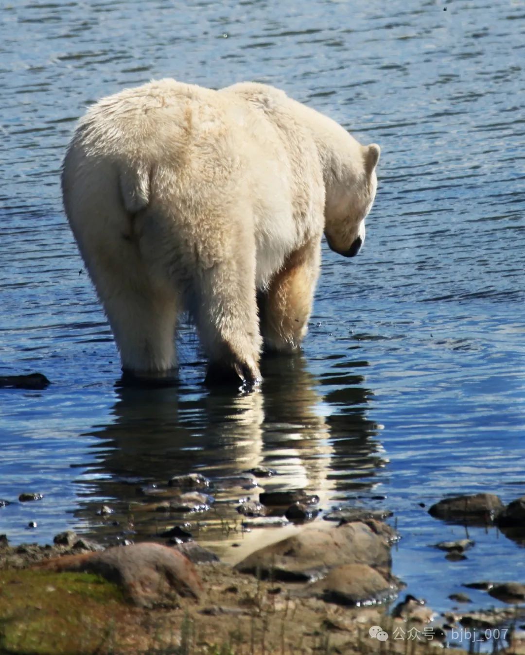 2點47分東北方,一只公熊站在湖水中。