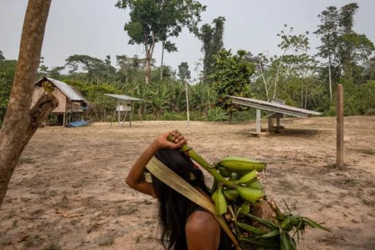 盡管地處偏遠,但這個村莊已經如許多其他開始使用現代技術的亞馬遜社區一樣,安裝了太陽能電池板和上網用的衛星天線。