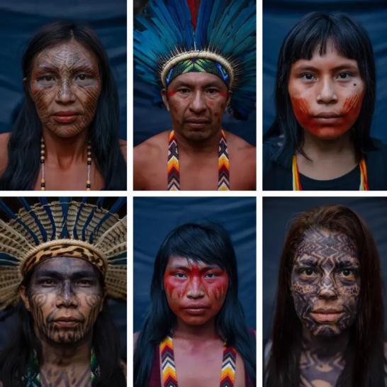 ▲在諾克·庫因族和亞瓦納瓦族先輩的傳統中,只有男性長者才能成為薩滿,但希納的兩位姑姑——拉伊蒙達·普塔尼和胡沙胡——近幾年也都被接納成為薩滿。上排從左向右:塔烏·卡瑪納瓦;波查·卡瑪納瓦薩滿;拉布·卡瑪納瓦。下排從左向右:希納·尤拉;梅約·卡瑪納瓦;艾瑞卡·蒂瓦·羅尼。