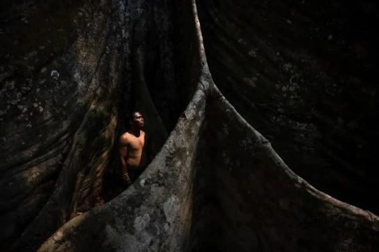 ▲站在木棉樹下的希納·尤拉。木棉樹是阿克里州亞瓦納瓦族和諾克·庫因族人的圣樹。希納正準備成為一位精神領袖和治療者,也就是肩負著保護古老傳統和這片森林使命的巫師。圖片來源:Victor Moriyama / 對話地球