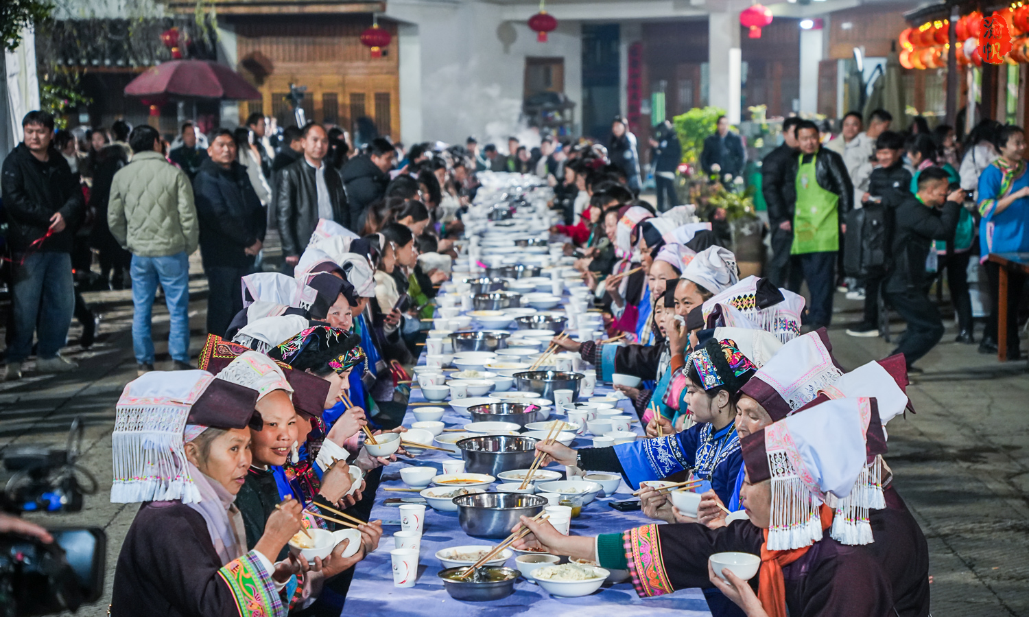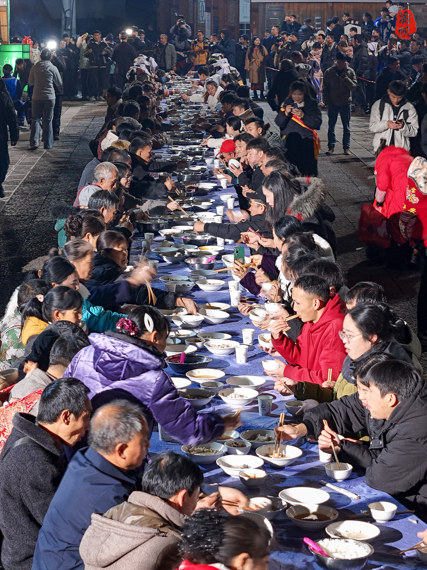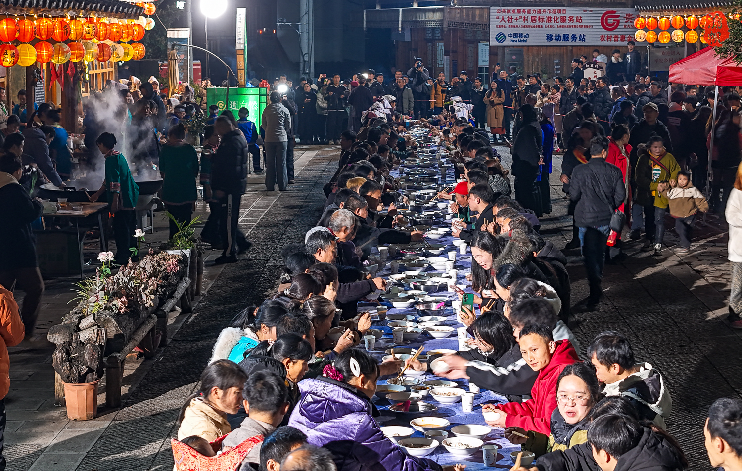 貴州一個村寨的跨年活動:長桌宴、村晚、篝火、煙花,太難忘了