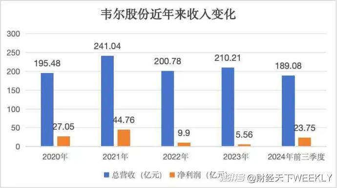 此后,韋爾股份在2022年時利潤大幅度下滑,公司一度步入“至暗時刻”。但三年過去,韋爾股份“翻身”了。