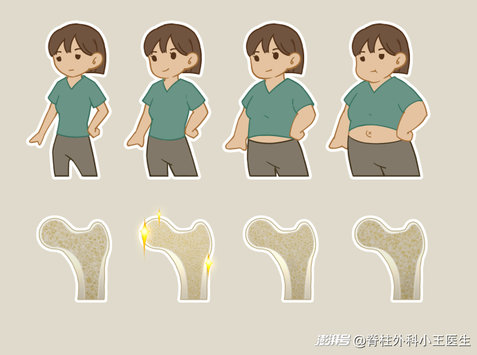 同時(shí),大部分肥胖患者通常受限于體重及體型,體育活動(dòng)及鍛煉較少,長(zhǎng)期缺乏鍛煉會(huì)導(dǎo)致身體力量及平衡性下降,更容易跌倒,導(dǎo)致骨質(zhì)疏松性骨折的發(fā)生。