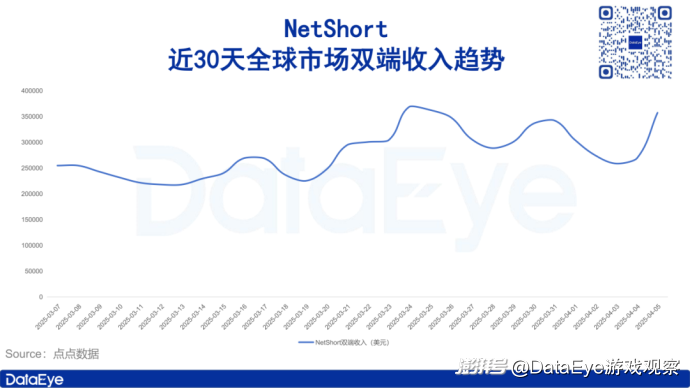 近30天(3.7-4.5),NetShort全球市場雙端預(yù)估收入約837.1萬美元(約合人民幣6110.6萬元),單月收入超6000萬的數(shù)據(jù),也印證了NetShort模式的成功。