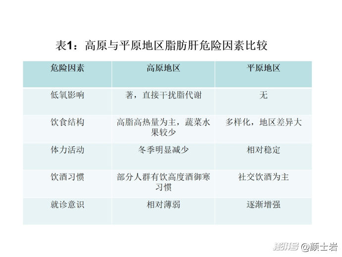 1.移居高原者(如援藏干部、邊防軍人、工程建設者等)是脂肪肝的高危人群。這部分人群往往面臨"三重打擊":從平原到高原的急性低氧應激、工作壓力導致的飲食不規律、以及為應對寒冷增加的高熱量飲食。研究顯示,移居高原者在進入高原后6個月內,脂肪肝發病率顯著增加[5]。針對這一群體,我們推薦"三早原則":早篩查(進入高原3個月內進行肝臟超聲檢查)、早干預(發現肝脂肪變立即調整生活方式)、早適應(循序漸進增加運動量)。移居者應特別注意避免兩種極端:一種是過度強調"補充營養"而大量攝入高脂高糖食物;另一種是因高原反應導致食欲下降而長期進食不足,這兩種情況都可能誘發或加重脂肪肝。