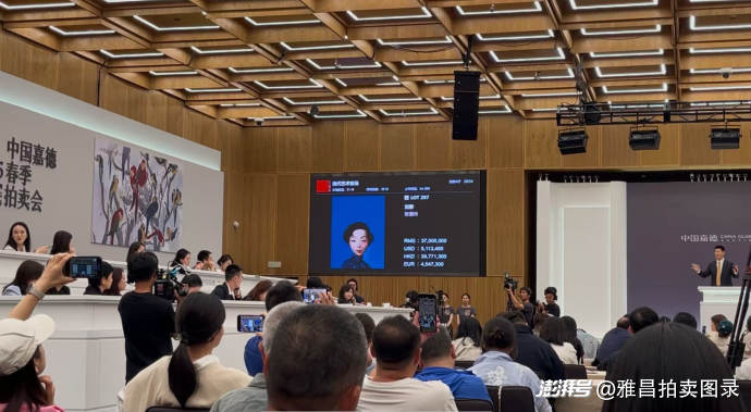 中國嘉德2025春拍“二十世紀及當代藝術”拍賣現場,劉野《張愛玲》拍賣瞬間
