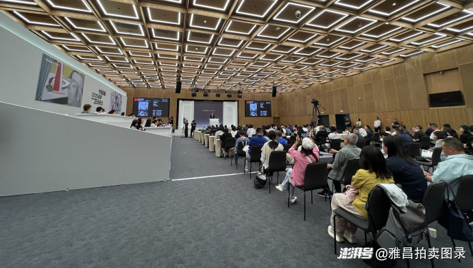 或許是大雨降至,當晚開拍前,拍賣廳現場并未像往季一樣擠滿了人,隨著晚上7:30左右拍賣會正式開始,廳內開始陸續涌入人群,工作人員緊急在后排加放座椅,瞬間,拍賣會場烏壓壓地坐滿了人。