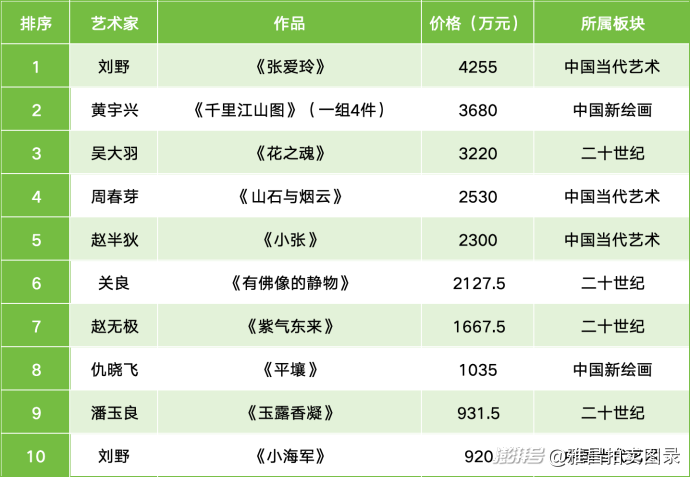 劉野的《張愛玲》,4255萬元成交,是其最低估價的近5倍。同時也是藝術家的第四高價,是本季當之無愧的明星拍品。