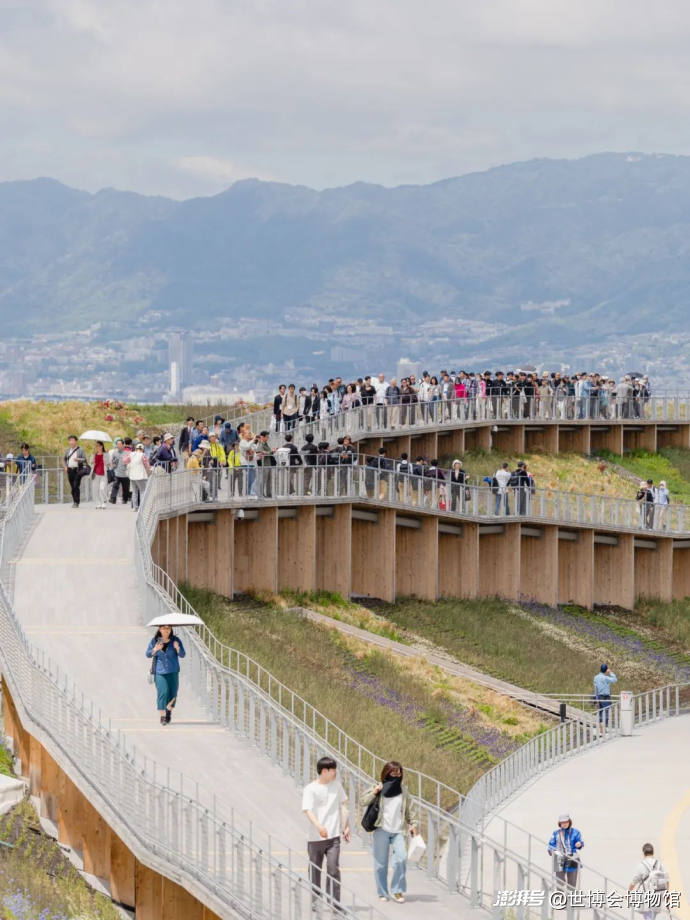 作為2025年大阪世博會的標志性建筑,The Grand Ring以其獨特的環形設計成為整個園區的焦點。這座巨型結構汲取了日本古寺的建筑精髓,巧妙運用本土杉木與扁柏,結合傳統榫卯工藝與現代金屬加固技術,既展現傳統美學又確保抗震安全。建筑整體占地6萬平方米,高度達20米,內部空間層次分明:底部設有環形步道供游客穿行,頂部則打造了視野開闊的觀景平臺,可一覽世博園全景與大阪灣風光。特別值得一提的是,建筑表面錯落分布的生態屋頂會隨著四季更迭變換色彩,為整個空間增添了動態的自然美感。
