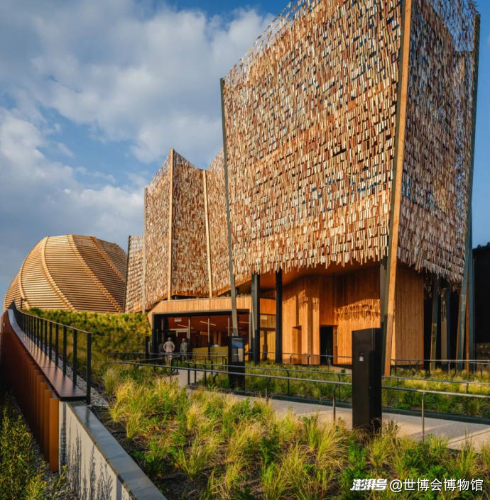 德國館由六個木質圓柱體單元相互穿插組合,形成自由流動的游園式空間序列。建筑采用可循環建材與創新氣候控制系統,充分彰顯可持續設計理念。從建筑本體到展覽內容,展館全方位踐行零廢棄原則,將資源消耗降至最低,為未來建筑的可變性改造與材料再利用提供了示范性樣本。