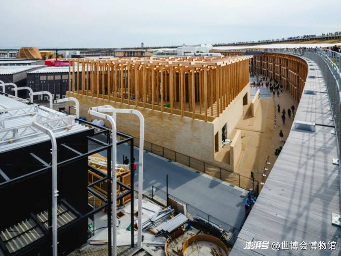 日本館以"生命循環"為核心理念,其獨特的環形建筑完全采用CLT(交叉層壓木材)構建而成。設計巧妙融合了日本傳統木構工藝與現代工程技術,通過多層木質外墻的設計,實現了自然光線與空氣的有機調節。館內精心設計的螺旋式參觀動線,引導游客在行進中感受自然界的循環韻律,從而建立起與日本傳統文化和生態智慧的情感共鳴。整個空間設計旨在通過建筑語言,喚起人們對生命循環本質的深層思考。