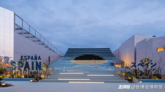 西班牙館以歷史悠久的"黑潮"航海路線為靈感主線,巧妙融匯海洋的流動韻律與太陽的能量意象,打造出富有生命律動的展示空間。這座展館將洶涌的海浪曲線與熾熱的陽光元素完美結合,不僅詮釋了海洋與太陽作為地球生命之源的重要地位,更象征著西班牙與日本兩國文化中共同珍視的航海精神和自然崇拜。