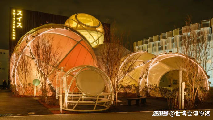 瑞士館的建筑通過一系列相互連通的球形空間體量,構建出獨特的空間組織與意象表達。這些球形結構在視覺上呈現出輕盈通透的美感,卻展現出異常穩固的結構特性,因而被譽為"瑞士世博史上最輕盈的建筑"。設計將建筑布局、燈光構思與場景敘事有機整合,通過澄澈、對比與延續性的敘事邏輯,創造出渾然一體的沉浸式觀展體驗。