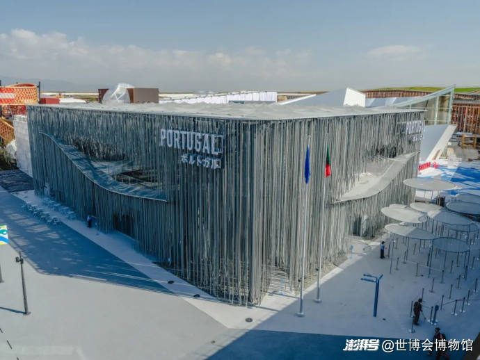 葡萄牙館以"海洋:藍色對話"為主題,生動展現了該國與海洋的千年情緣。建筑外立面創新性地采用懸垂繩索和再生漁網編織而成,仿若凝固的海浪瞬間,在微風中輕盈律動,藝術化地詮釋了葡萄牙悠久的航海文明。這一環保建材的運用不僅完美踐行了循環經濟原則,更彰顯了葡萄牙在應對氣候變化、守護海洋生態和推動可持續發展等全球議題中的先鋒角色。