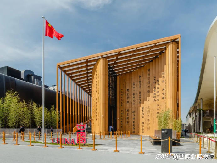 中國館的建筑外觀以中國傳統書簡長卷為造型靈感,巧妙融合了竹子、漢字與書卷三大文化元素,生動詮釋了"道法自然,天人合一"的中華文明精髓。展館內部設計延續書簡長卷的創意理念,通過層層遞進的展示空間,宛如展開一部華夏文明的發展史詩,引領觀眾從悠久歷史走向燦爛未來。