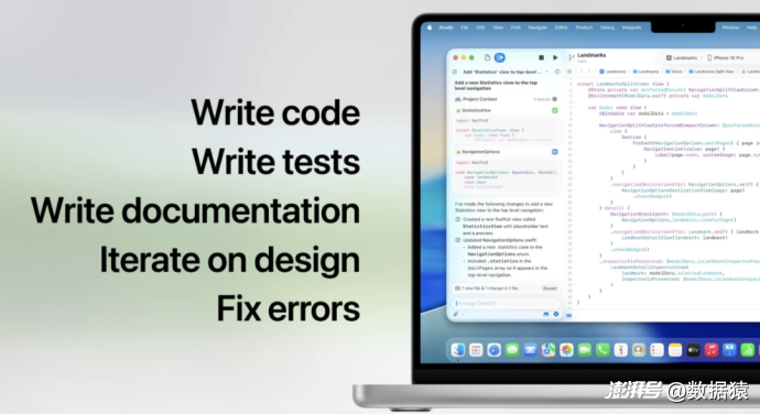 在開發者端,蘋果亮出了重磅武器Xcode 26 ——其AI驅動的開發環境首次支持生成式AI編程,包括自動代碼生成、Bug修復、文檔生成、語音控制編程等。更重要的是,它支持接入OpenAI等第三方大模型,也能在Apple Silicon設備上運行本地模型。