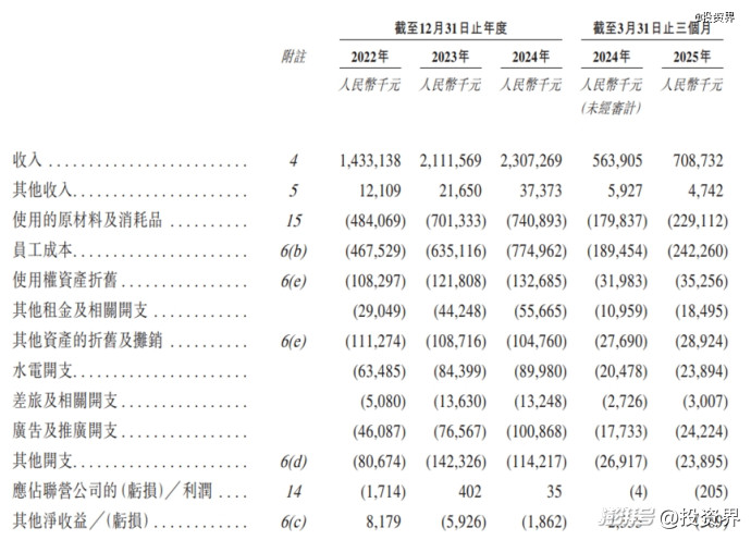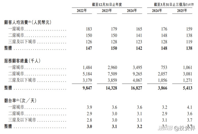 此外,2022年至2024年,以及2025年前三個月,巴奴經調整凈利潤分別為0.42億元、1.44億元、1.96億元,以及0.77億元;期間經調整凈利潤率分別為2.9%、6.8%、8.5%以及10.8%。