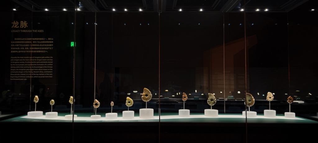 展覽現場 紅山文化 玦形玉龍 遼寧省文物考古研究院藏 1984年遼寧建平牛河梁遺址第二地點一號冢4號墓出土