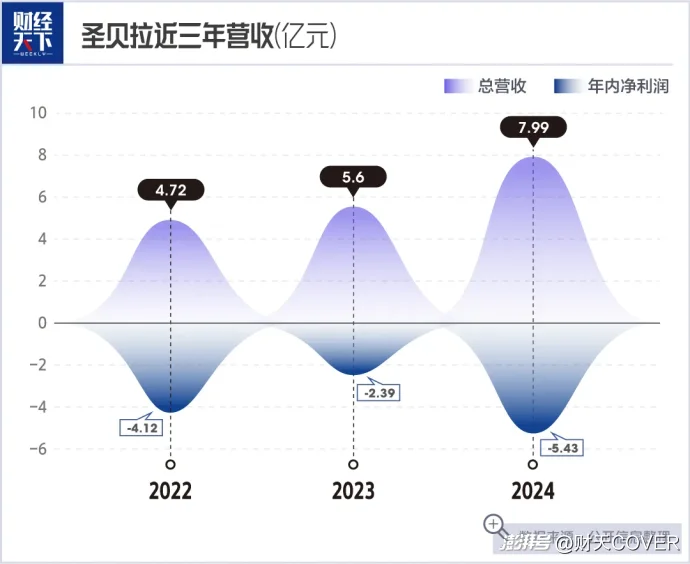 2022年至2023年,圣貝拉期內虧損分別為4.12億元、2.39億元,在2024年虧損額進一步擴大至5.43億元。