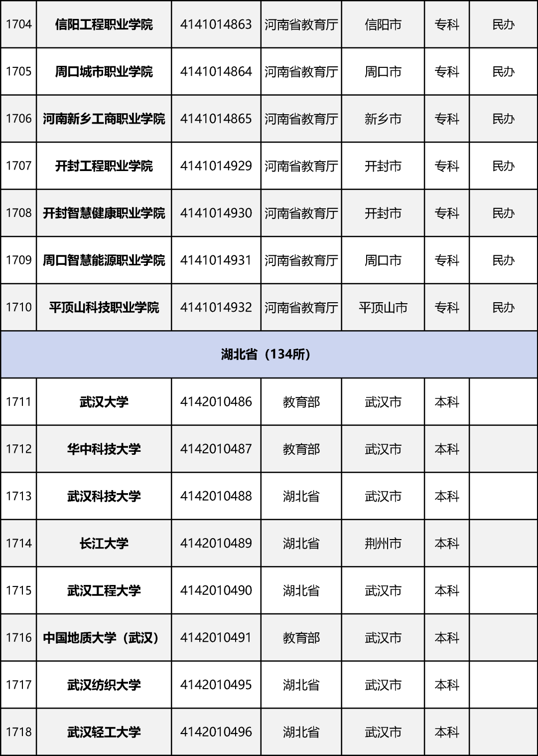 日前,教育部發布全國高等學校名單。截至2025年6月20日,全國高等學校共計3167所,其中:普通高等學校2919所,含本科學校1365所、高職(專科)學校1554所;成人高等學校248所。本名單未包含港澳臺地區高等學校。詳情如下↓↓