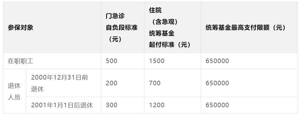 2025醫保年度本市職工基本醫療保險,參保人員門急診自負段標準、住院(含急觀)統籌基金起付標準暫不調整,仍按2024醫保年度標準執行。