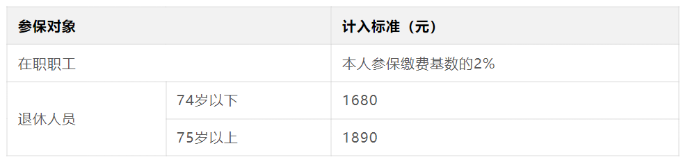 2025醫保年度,本市職工醫保參保人員個人賬戶計入標準仍按2024醫保年度計入標準執行。具體標準見下表: