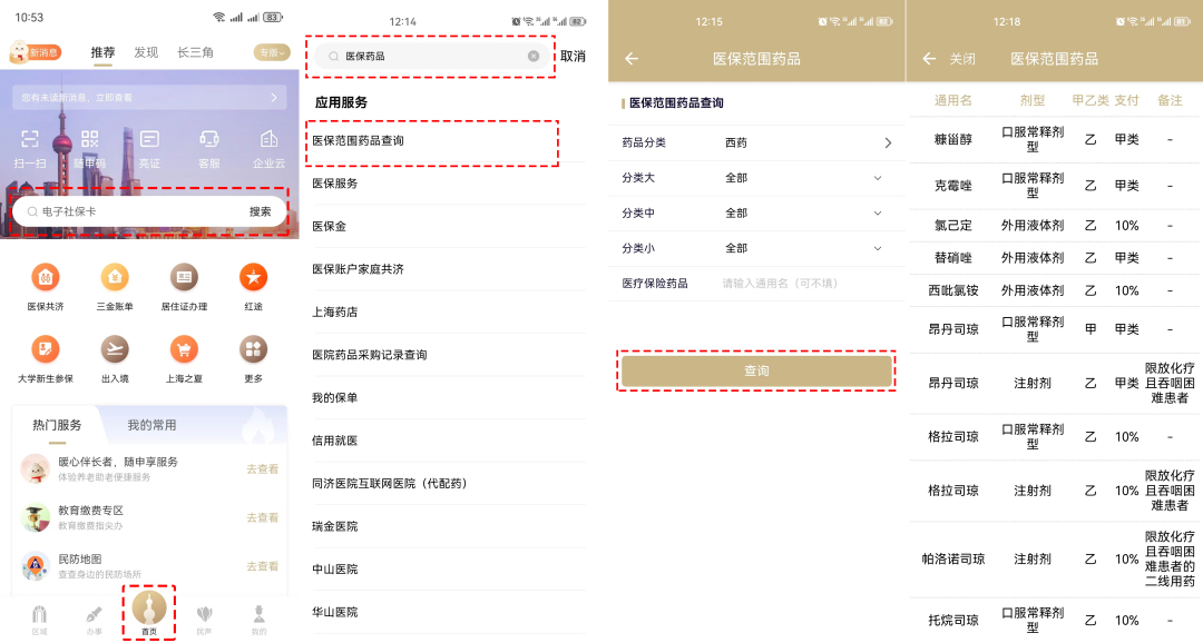 上海市民可登錄“隨申辦市民云”APP→首頁搜索框中輸入關鍵字“醫保藥品”→點擊“醫保范圍藥品查詢”進入服務頁面→選擇或輸入藥品信息后,點擊“查詢”按鈕,即可確認藥品是否屬于醫保范圍。