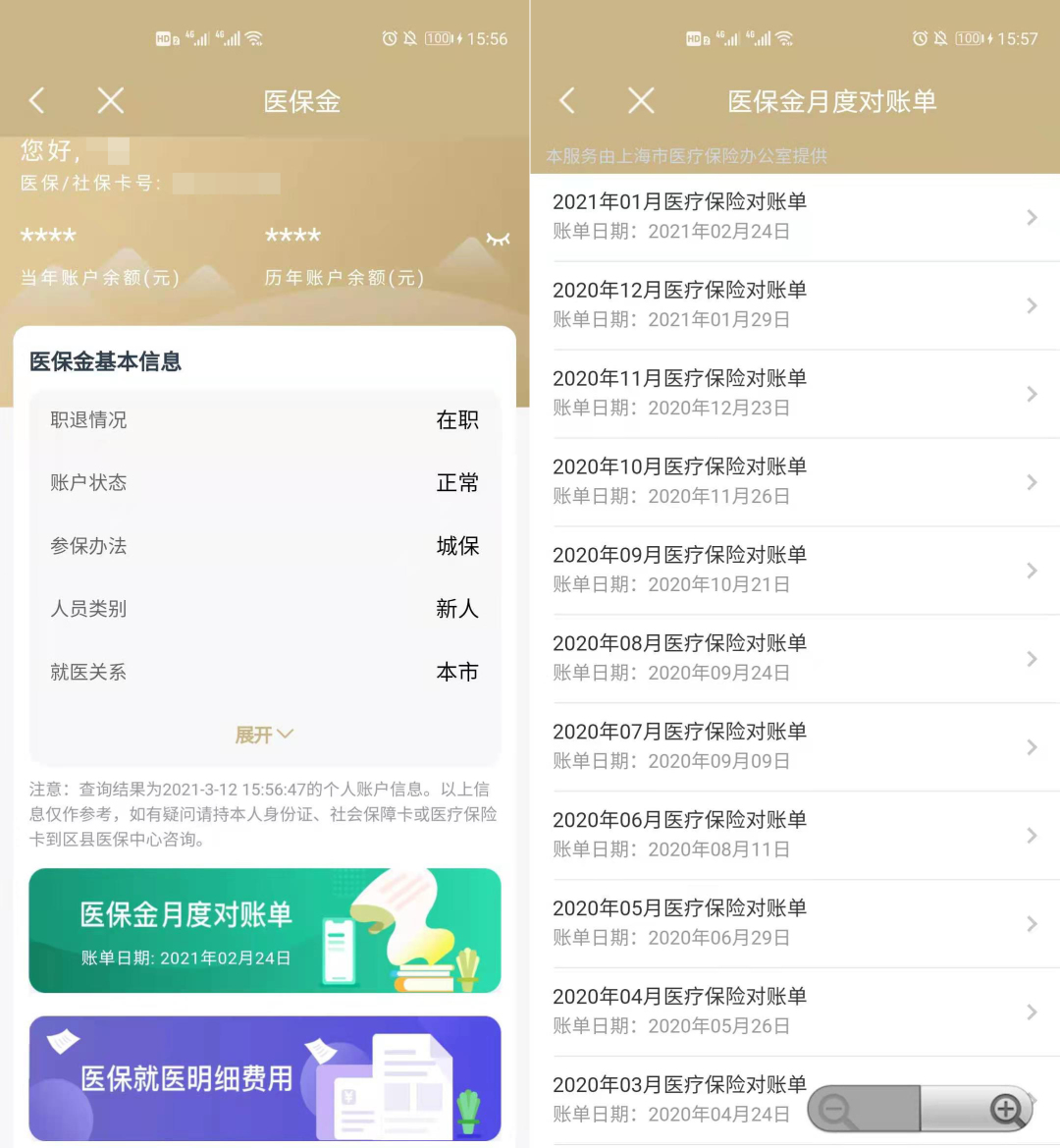 上海醫保參保人可登錄“隨申辦市民云”APP,實時查詢自己的醫保金信息。