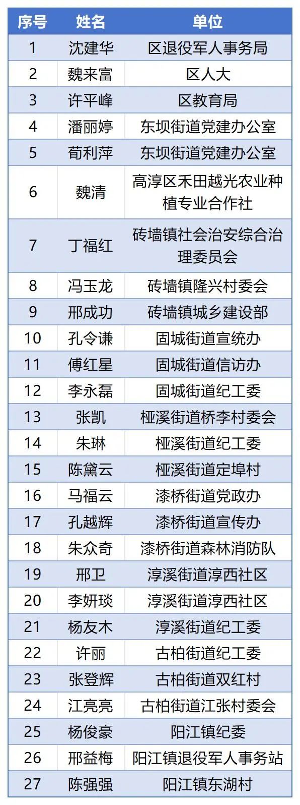 高淳區(qū)廉潔征兵監(jiān)督員名冊(cè)