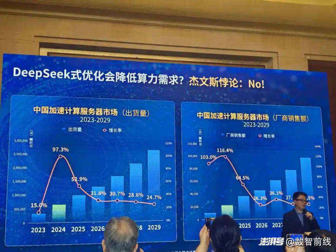 “基于杰文斯悖論,即一項技術(shù)降低門檻、節(jié)省費(fèi)用,會讓更多人進(jìn)入市場,反而促進(jìn)市場爆發(fā)。”IDC中國副總裁周震剛說,2025年,中國加速服務(wù)器市場仍將保持60%以上的增速。