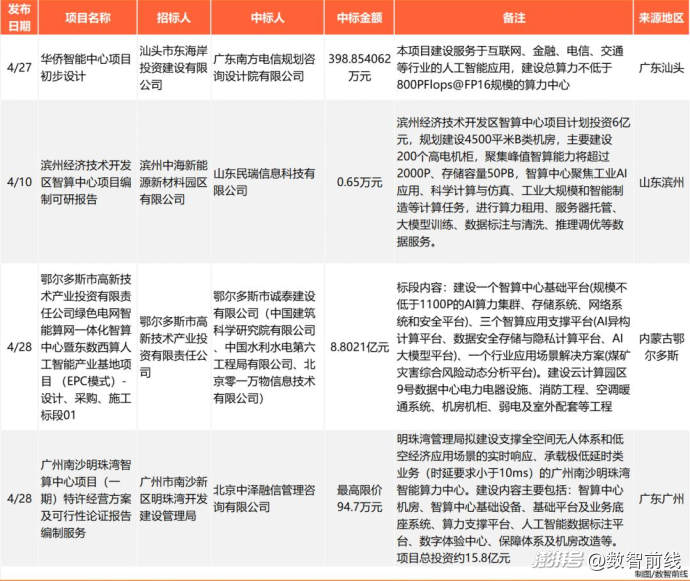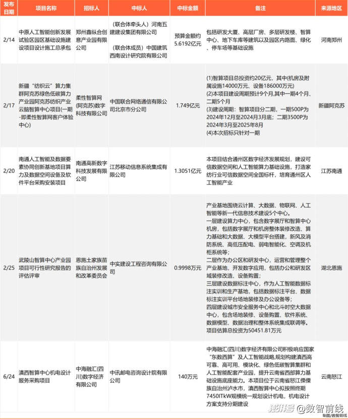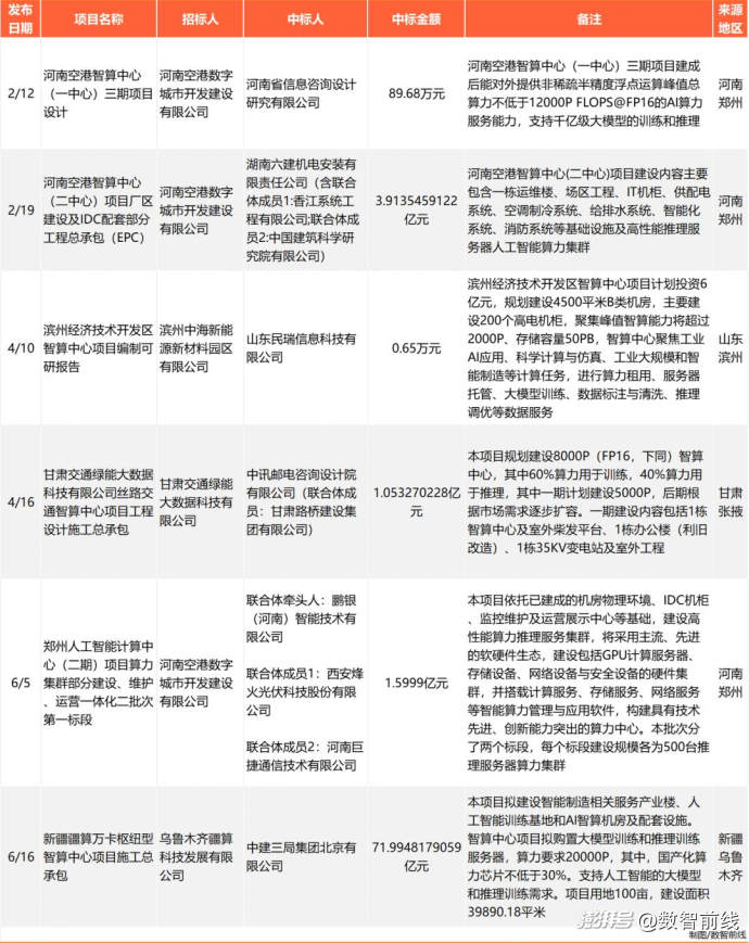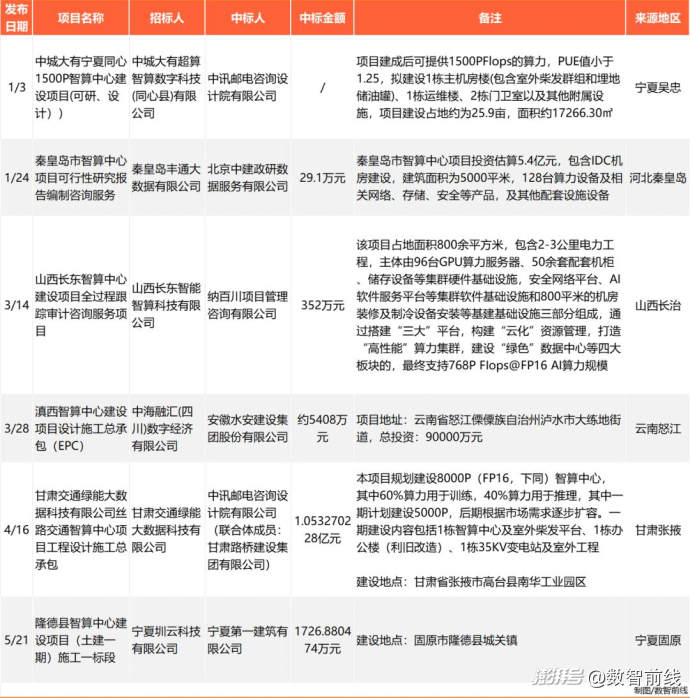 (關(guān)注公眾號后并留言,可以獲取最新393個智算中心完整中標(biāo)項目表單。)