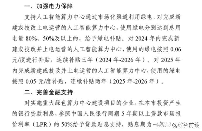 2024年1月,青海在全國率先發(fā)布了《綠色算力基礎(chǔ)設(shè)施等級評定規(guī)范》等5項綠色算力地方標(biāo)準(zhǔn)。新疆多個地區(qū)也出臺了一系列的政策和舉措,助力綠色算力發(fā)展。比如克拉瑪依市于 2025 年出臺相關(guān)政策,從電力保障、金融支持、設(shè)施投入、算力協(xié)同等 10 個方面給予算力產(chǎn)業(yè)全方位政策扶持,其中,明確規(guī)定,對完成新建或技改上電運(yùn)營的人工智能算力中心,使用綠電分別達(dá)到總用電量 80%、50% 及以上的,給予綠電補(bǔ)貼。