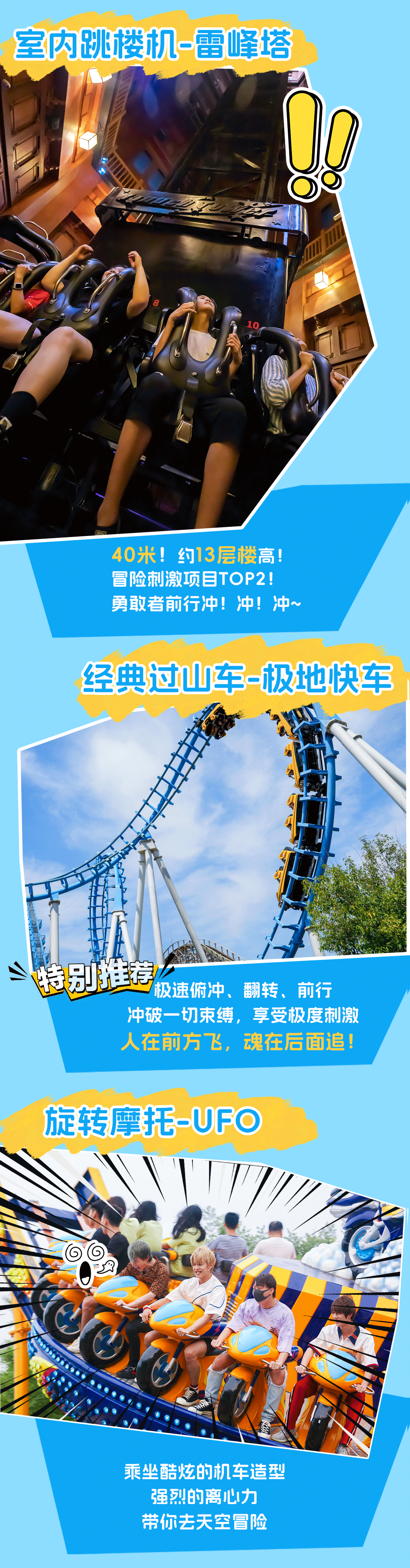 活動(dòng)期間,30+主題項(xiàng)目全天開(kāi)放。白天刷室內(nèi)項(xiàng)目,室內(nèi)項(xiàng)目冷氣開(kāi)放。夜場(chǎng)玩過(guò)山車、海盜船等刺激項(xiàng)目。玩項(xiàng)目間隙,各種演藝節(jié)目都可以隨時(shí)互動(dòng)。20:30去節(jié)慶廣場(chǎng),參加一場(chǎng)夏日專屬的潑水狂歡節(jié),清涼刺激。
