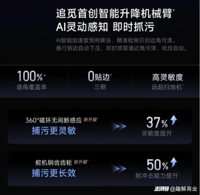日常使用時(shí),機(jī)械臂刮條會自動(dòng)識別顆?;覊m,無需額外設(shè)置。簡易的操作配上驚艷的效果,讓不少品牌都迅速跟進(jìn)這一“黑科技”。