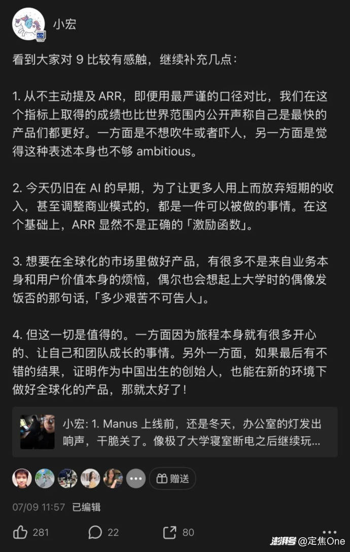 當然,這也意味著選擇。上述接近Manus的人士稱,Manus目前的體量,很難同時兼顧中美兩個市場。全力押注海外,是目前的戰略決策。