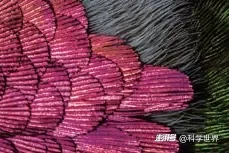 蜂鳥羽毛的色彩絢麗,這是因為其羽毛表面具有類似魚鱗的多層重疊結構形成的結構色。這些層狀結構能夠反射光線,使得羽毛在不同的觀察角度下呈現(xiàn)出變幻的顏色。蜂鳥的羽毛排列十分整齊,羽小支的表面平整。每根羽小支上都鑲嵌著許多微觀的魚鱗狀結構,當光照射到這些細微結構上時,便會顯現(xiàn)出豐富多彩和復雜的色彩效果。