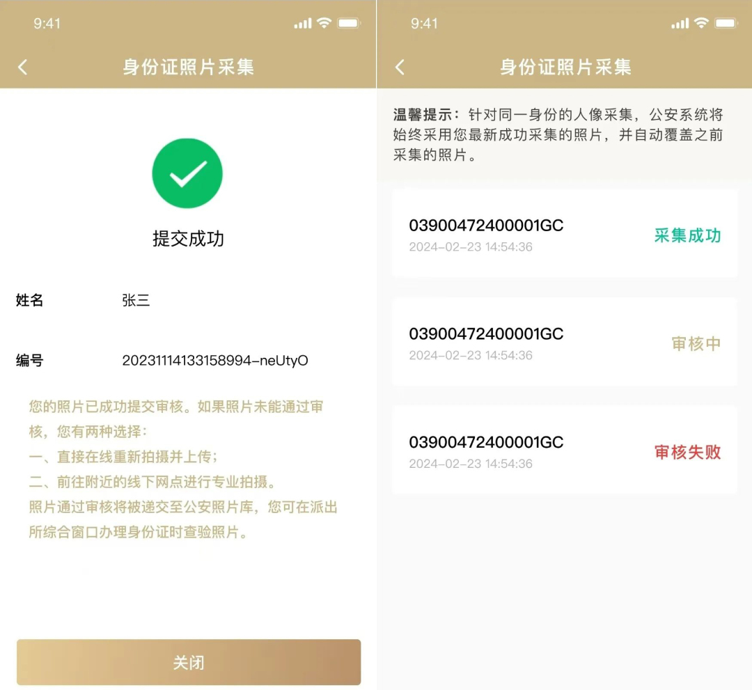 審核合格并顯示入庫(kù)后,您可以前往就近派出所綜合窗口受理身份證業(yè)務(wù)。