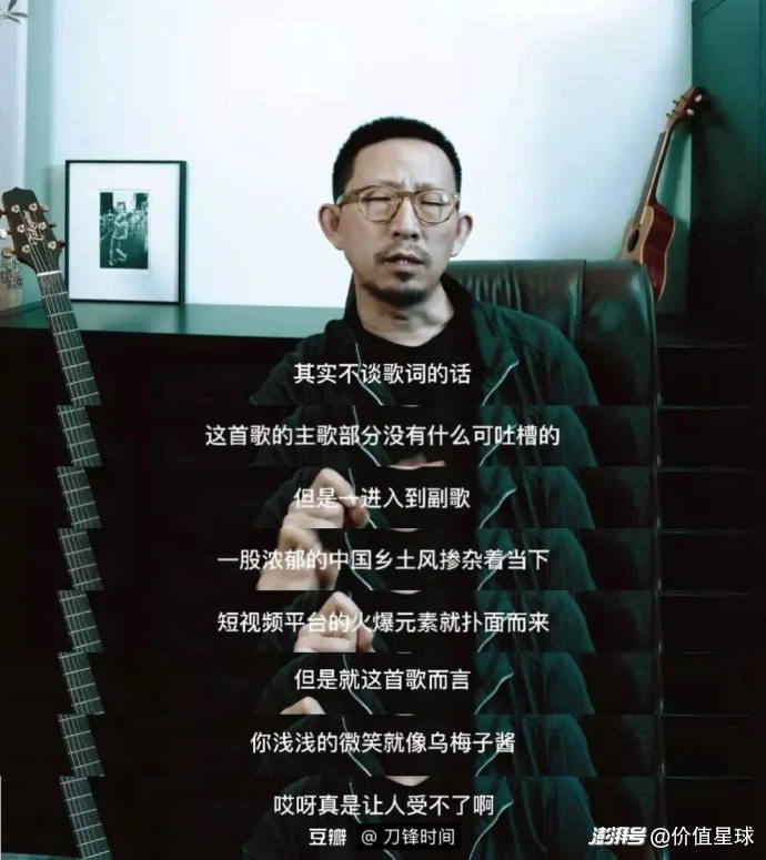2023年,李榮浩創作的《烏梅子醬》在抖音走紅后,一度被樂評人和媒體抨擊為“華語樂壇的悲哀”。樂評人丁太升炮轟《烏梅子醬》俗不可耐,更是犀利直言。“李榮浩這樣的原創音樂人都加入到了短視頻平臺神曲排行榜的行列,多可悲的一件事啊”。