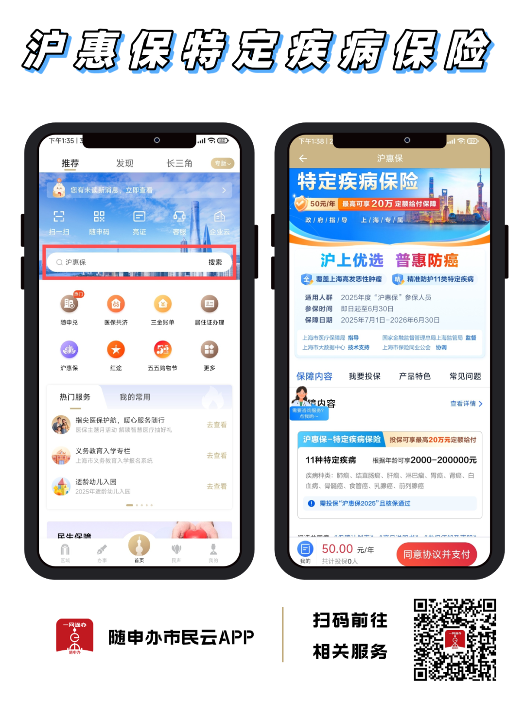 如果您在上海工作生活,那么“129元+50元”的雙保組合拳(2025版滬惠保+特定疾病保險),將為您從大病報銷到特病特藥搭建出一份較為全面的安全保障,為您和家人的滬上健康生活托底!