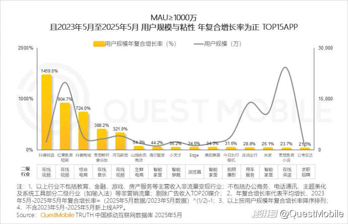 QuestMobile數據顯示,2025年5月短劇整體流量同比上漲126.8%,增長貢獻主要來自于短劇微信小程序與短劇APP,兩者增長率分別達到632.1%、147.8%。