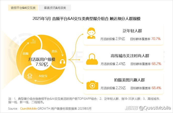 1.1 組合媒介1:音頻及AI交互類媒介組合以聲音交互與智能交互場景為錨點,精準且高效地覆蓋泛年輕人群等細分群體