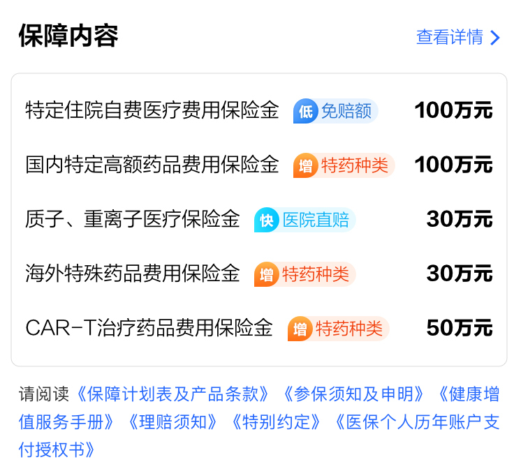 ·特藥責任:國內特藥增至48種,海外特藥28種,CAR-T治療藥品擴至4種,0免賠額,最高賠付50萬元;
