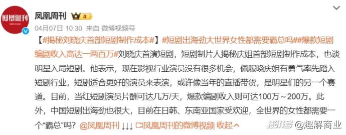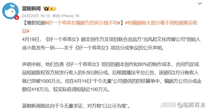 據(jù)“趣解商業(yè)”了解,頭部編劇大多都可以談分賬,靠一部短劇拿到百萬元收益的編劇不在少數(shù)。