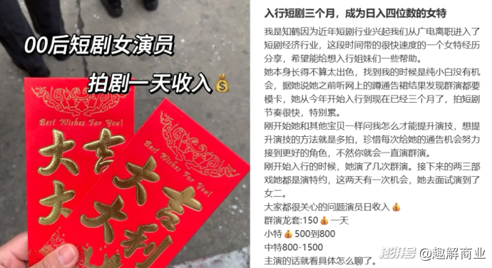 當(dāng)內(nèi)容行業(yè)回歸內(nèi)容本身,創(chuàng)作者也有機(jī)會(huì)拿到更可觀的薪水和話語權(quán)。“趣解商業(yè)”了解到,如今短劇行業(yè)不僅頭部爆賺,大量中腰部的導(dǎo)演編劇也能實(shí)現(xiàn)月入過萬。